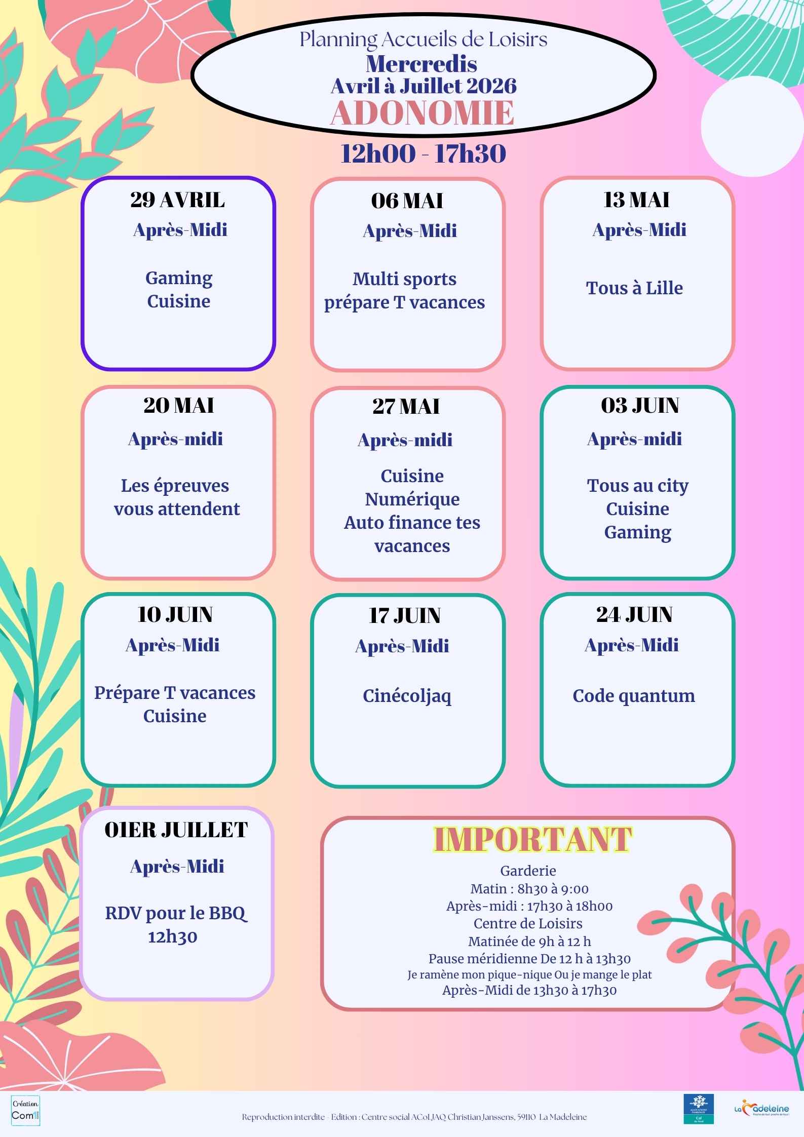Le Centre Social ACoLJAQ Christian Janssens lance les inscriptions pour ses accueils de loisirs des mois de janvier et février 2026.