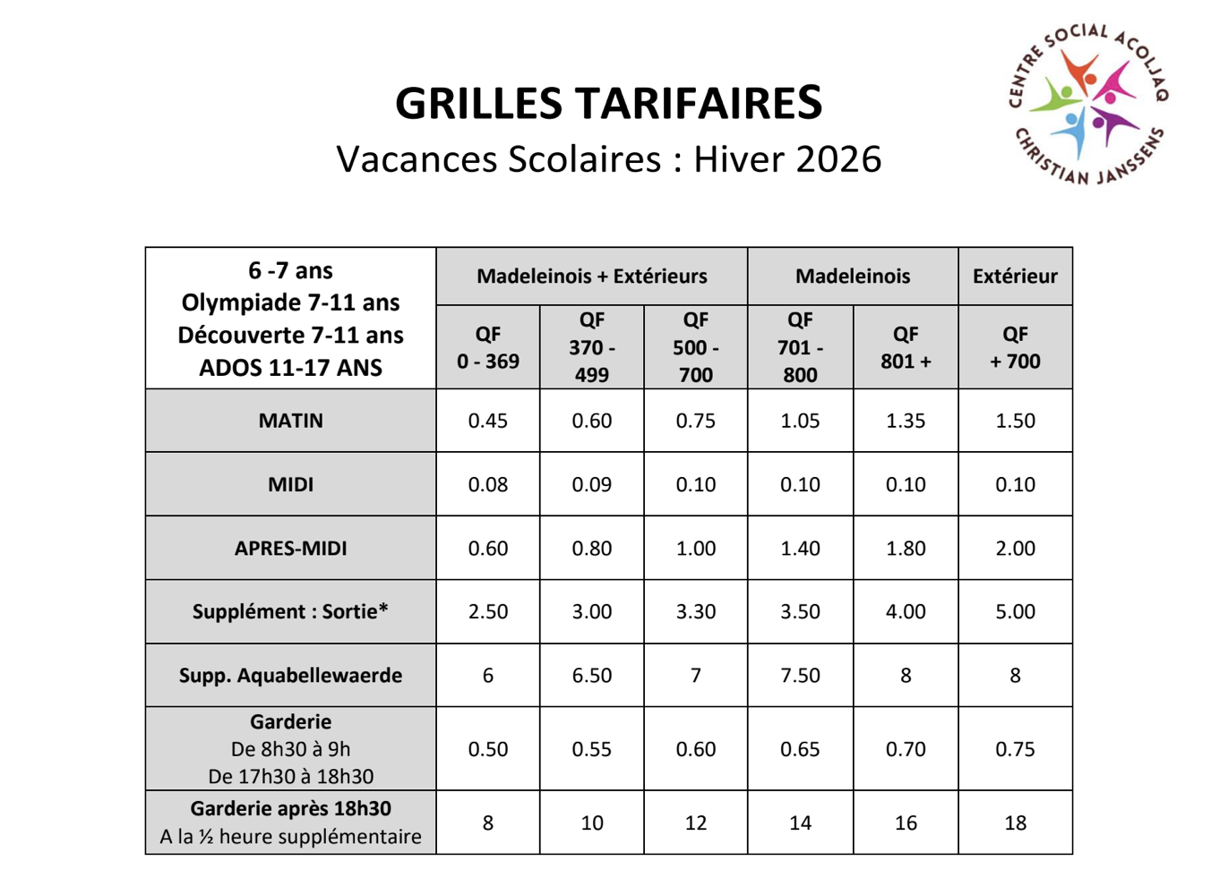 Vous pouvez inscrire votre ou vos enfants à l’accueil du centre social ACOLJAQ/CHRISTIAN JANSSENS